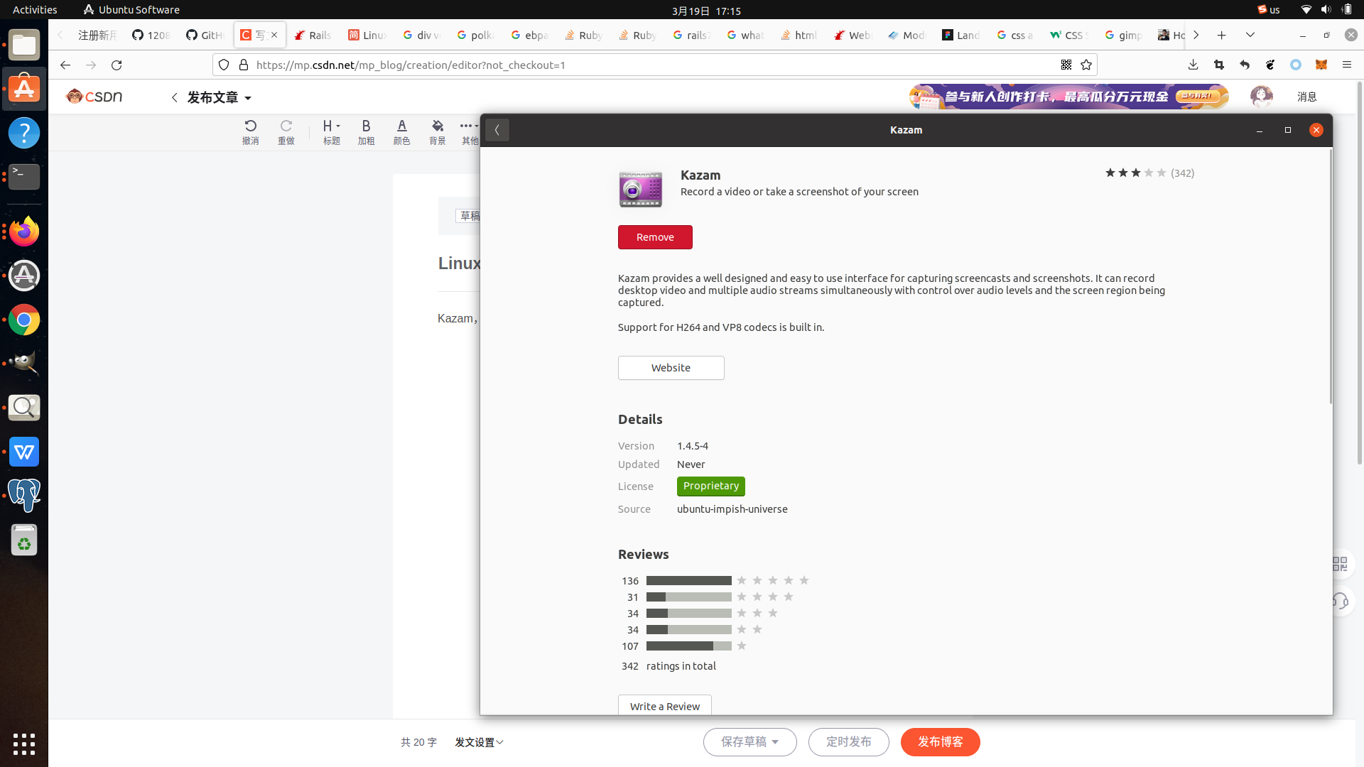 直接在软件商店搜索kazam安装即可使用