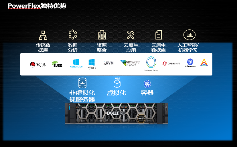 三是,支持大规模分布式集群的“分离式”超融合PowerFlex系列,它基于原来的VxFlex超融合系统优化而来,其核心技术源自ScaleIO块存储,这种“分离式”超融合的特点是,不仅集成了超融合架构高效、充分利用硬件资源的能力,同时也兼具计算和存储解耦能力,便于后期的“按需扩展”,同时还支持多种Hypervisior,是一款非常适合高价值数据库和工作负载、敏捷的私有云部署和数据中心整合的超融合方案。