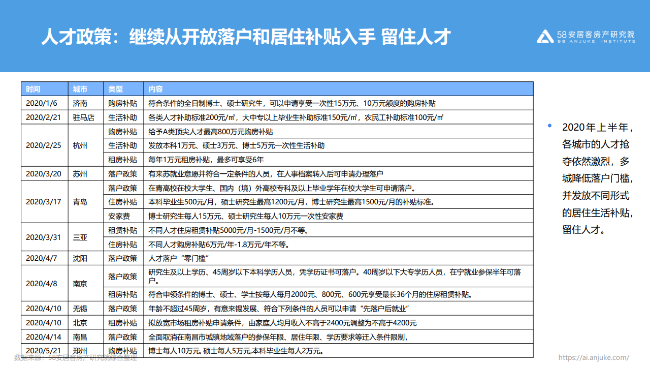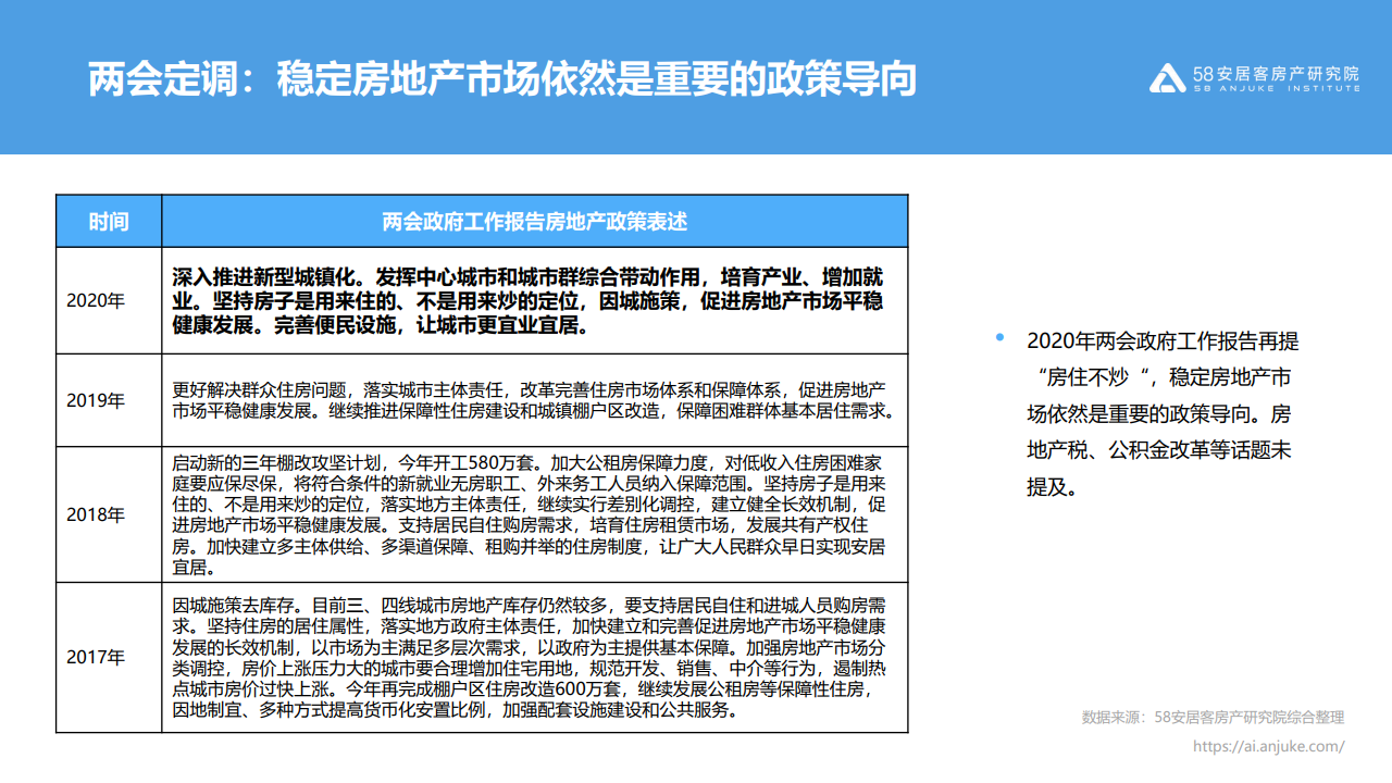 今天给大家分享的是 58安居客房产研究院:2020年上半年楼市总结