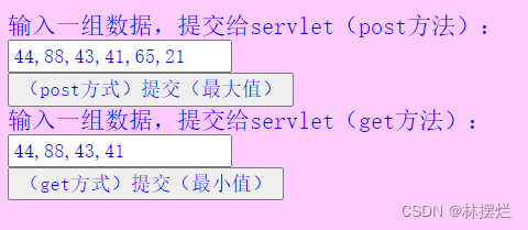 JSP:输入一组数据,(分别用get、post请求类型)提交给servlet,计算最大值以及最小值。