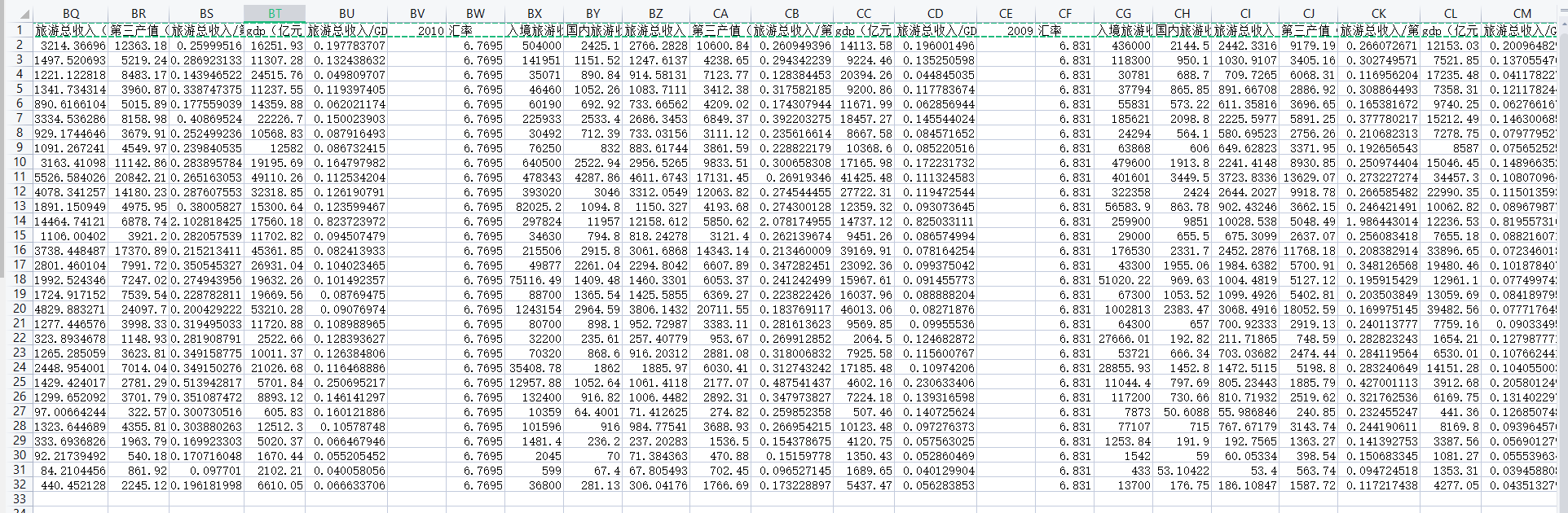 主要字段:入境旅游收入(万美元)、国内旅游收入(亿元)、旅游总收入(亿元)、第三产值(亿元)、旅游总收入/第三产值、gdp(亿元)、旅游总收入/GDP