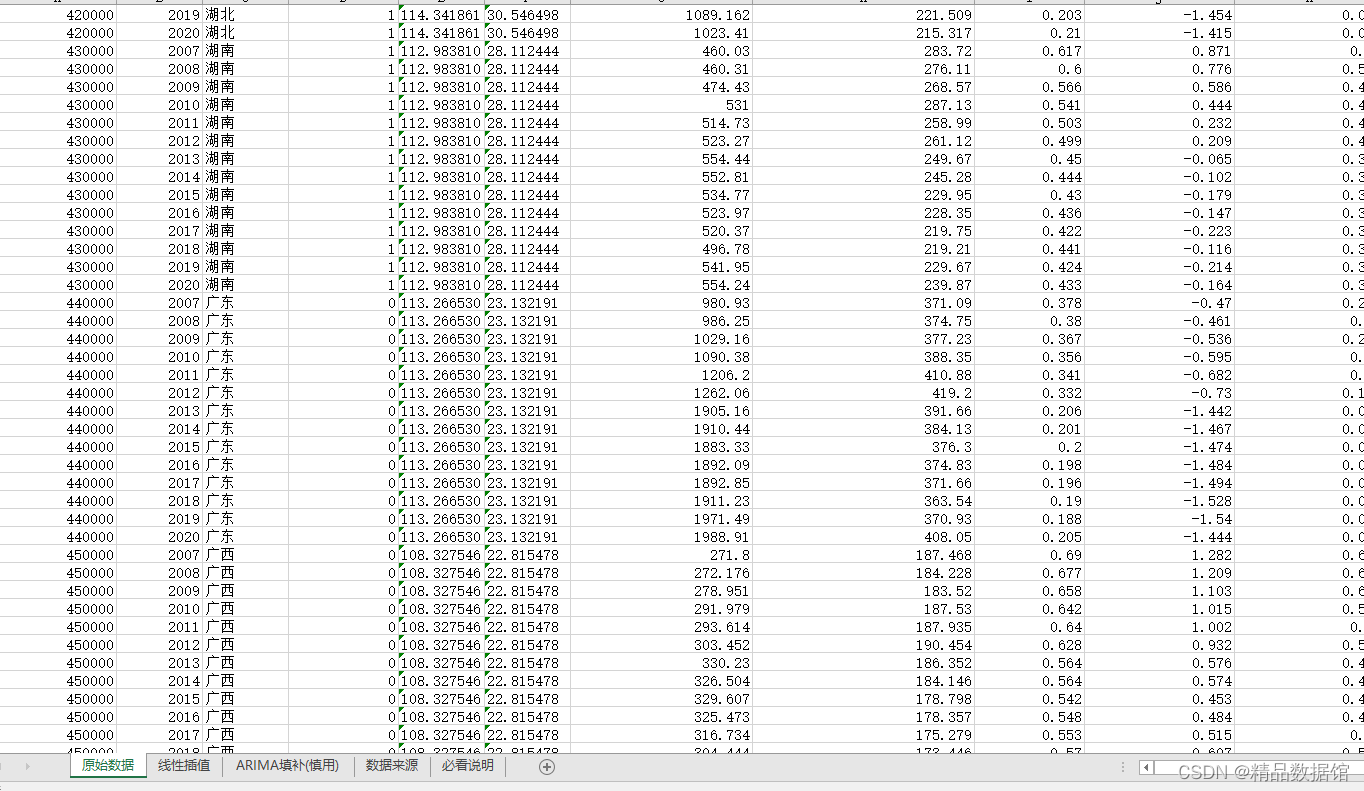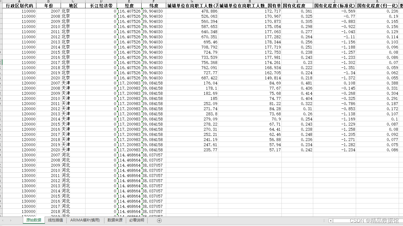 行政区划代码、年份、地区、长江经济带、经度、纬度、城镇单位、在岗职工人数、城镇单位在岗职工人数_国有单位、国有化程度国有化程度、国有化程度……
