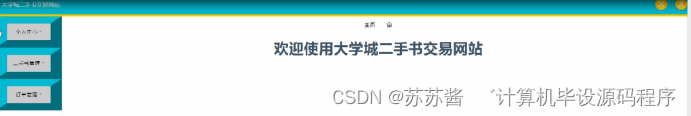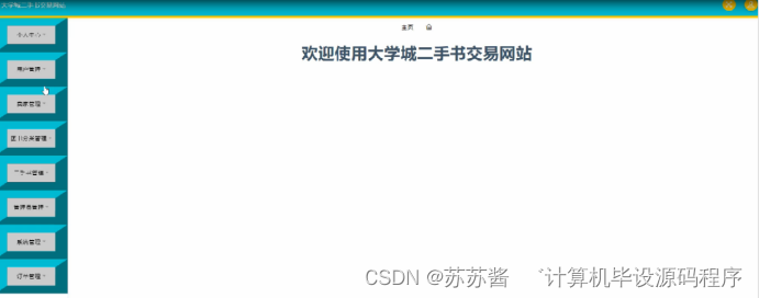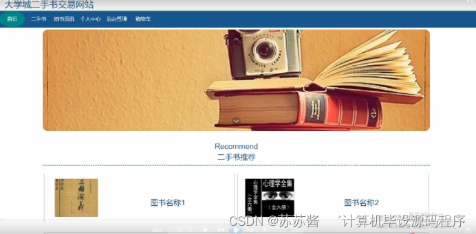 大学城二手书交易网站,在网站首页可以查看首页,二手书,图书资讯,个人中心,后台管理,购物车等内容,并进行详细操作;如图5-1所示。