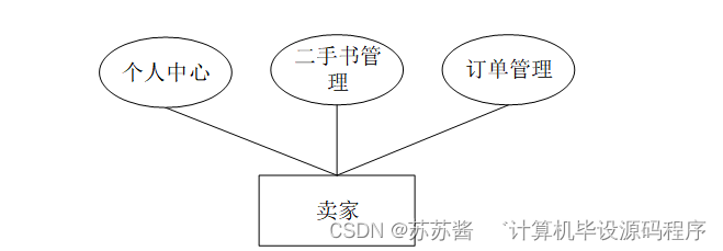 卖家登陆后,主要模块包括 个人中心,二手书管理,订单管理等功能。卖家用例图如图3-3所示。