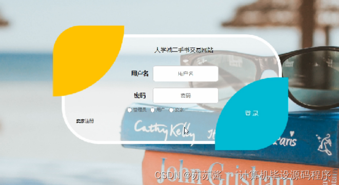 登录,管理员、用户和卖家通过输入用户名,密码,选择角色信息,点击登录进入系统进行操作,如图5-5所示。