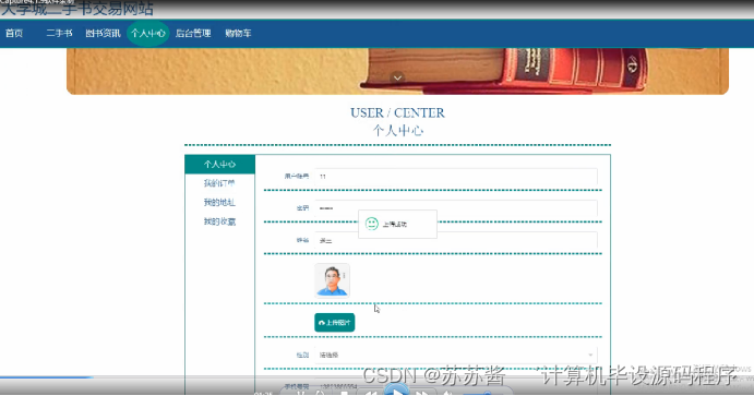 卖家登陆系统后,可以查看个人中心,二手书管理,订单管理等功能,还能对每个功能逐一进行相应操作,如图5-13所示。