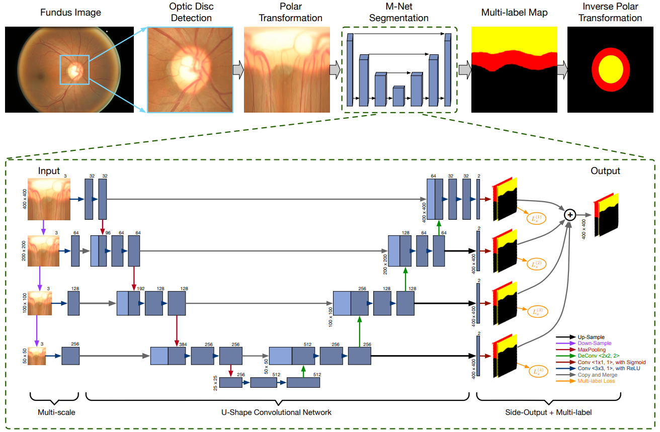 与前一个数据集相比,该数据在视盘分割的基础上还需要分割视杯,三类别语义分割任务。整体的流程还是按照引文的框架进行,其中 ROI 裁剪与还原已经在 基于PP-YOLO Tiny和M-Net的眼底彩照视盘分割 详细阐述。
