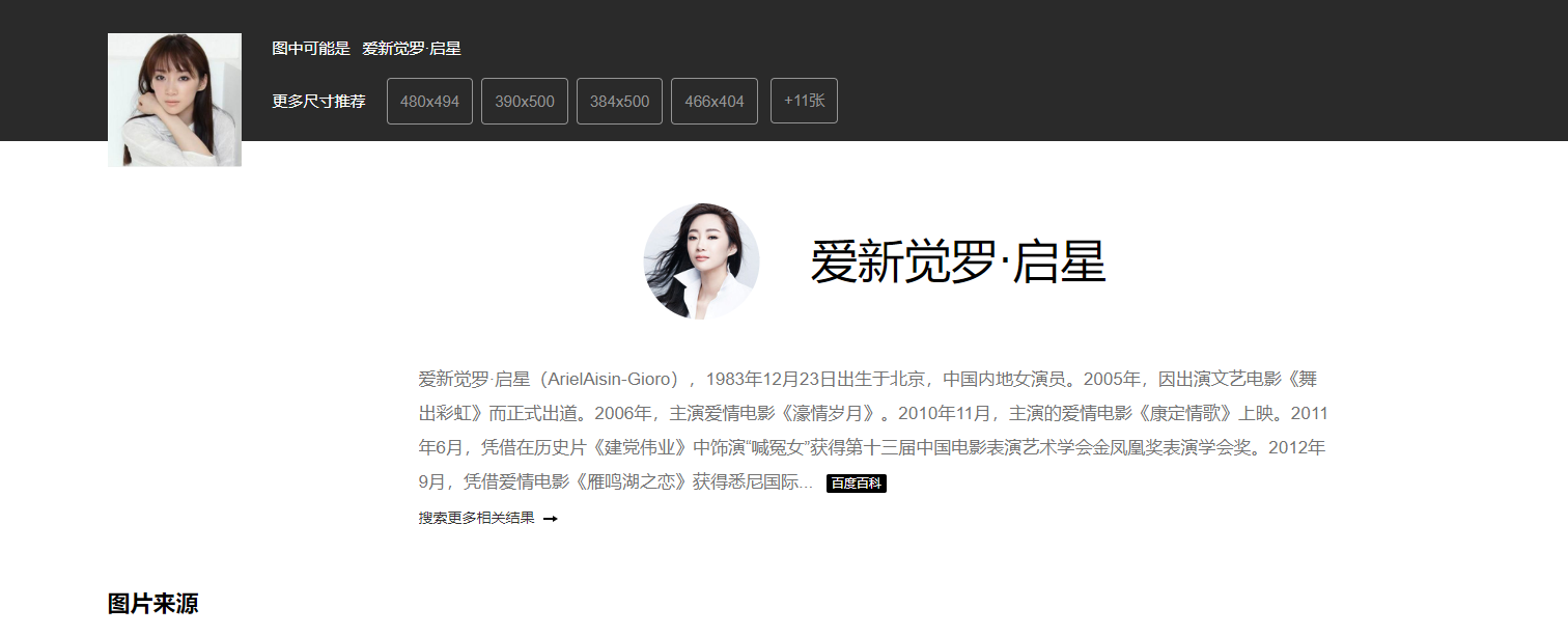 可以看到是一张能打开的图片,图片上是个不认识的女神。没关系,上百度以图搜图大法