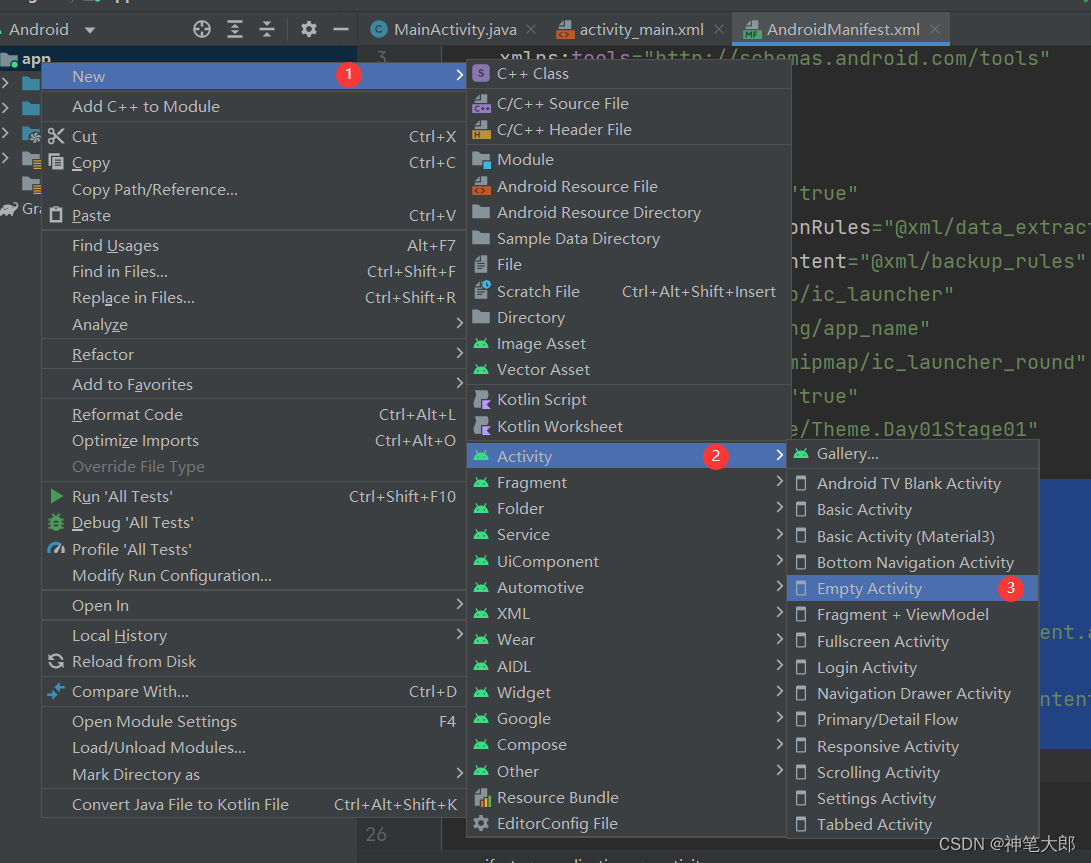 ●MainActivity :是一个人机交互的程序,相当于人与计算机沟通的手段,在这里面写java代码,从而达到想要实现的目的。