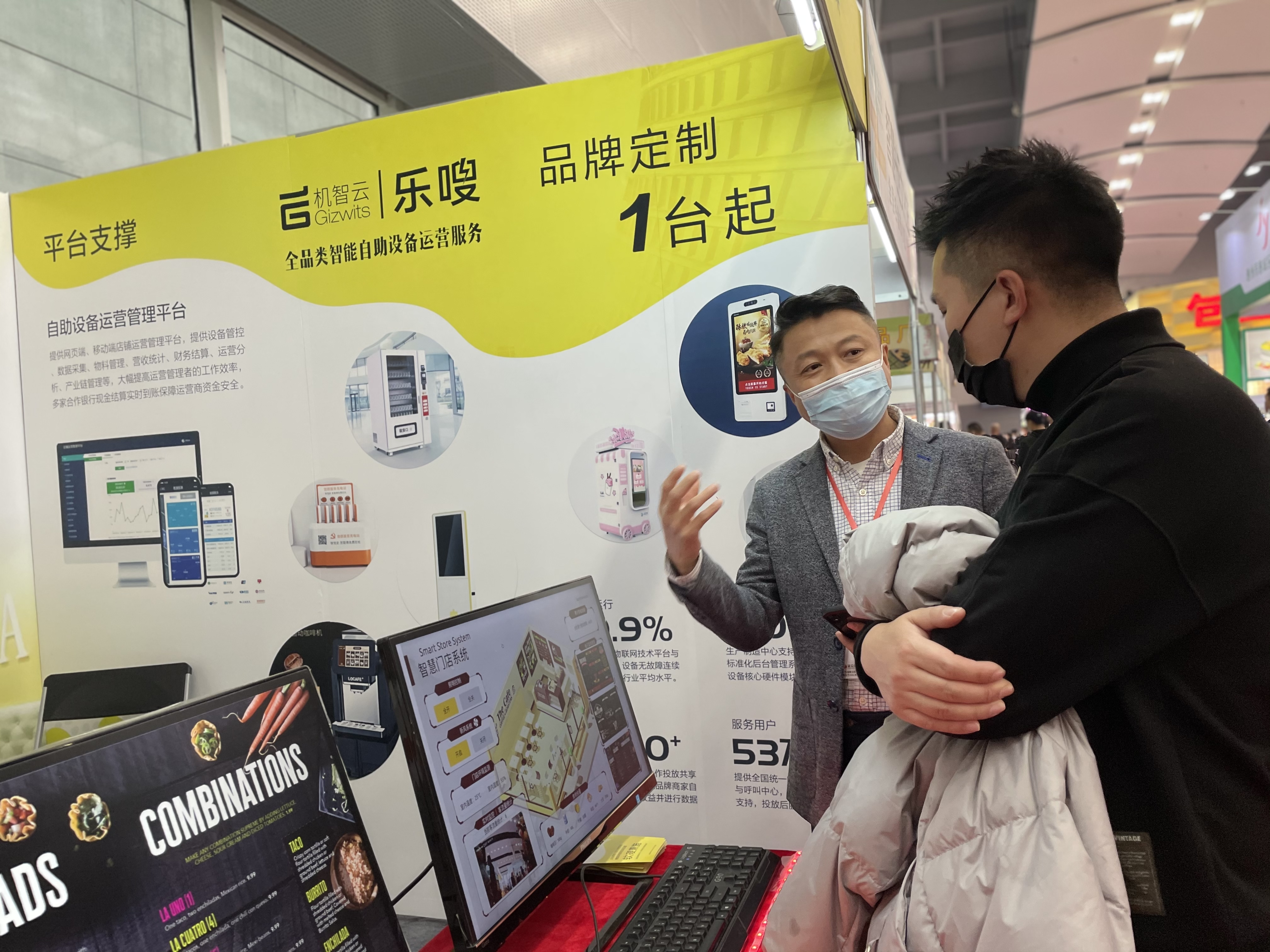 在机智云智铺展位现场,机智云一站式连锁智能餐饮门店整体解决方案及智能产品设备吸引了不少数观众、客户参观,对机智云产品项目进行体验使用、意向询问。
