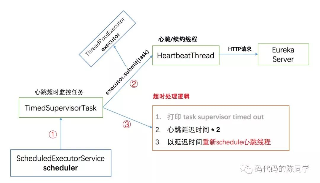 schedule TimedSupervisorTask来监控HeartbeatThread,如果超时则执行超时处理逻辑;没超时则由HeartbeatThread正常处理即可。