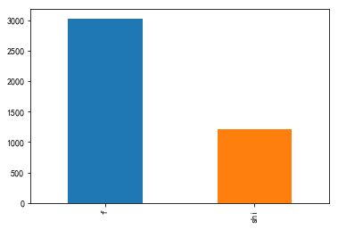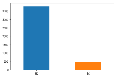 au['Gender'].value_counts().plot(kind='bar')#男女出险的对比
