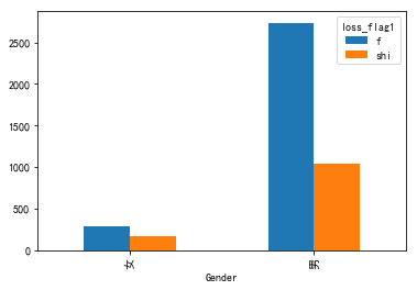 pd.crosstab(au['Gender'],au.loss_flag1).plot(kind='bar') #性别和出险的关系对比
