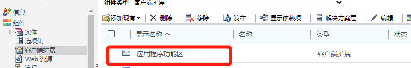 因为这两个按钮在每个实体列表的list上都有,所以我们可以在应用功能区实现