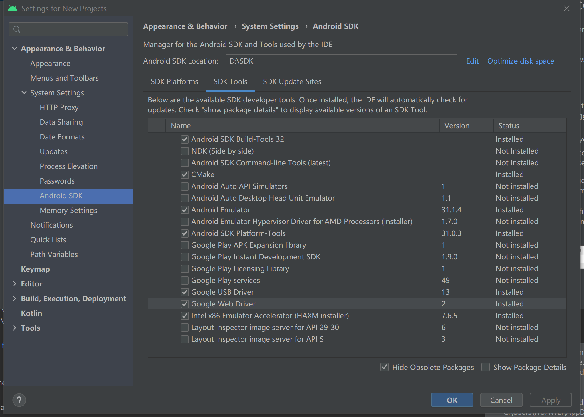 Android studio——>右上角的立方体标志“SDK Manager”——>点击“SDK Tools”