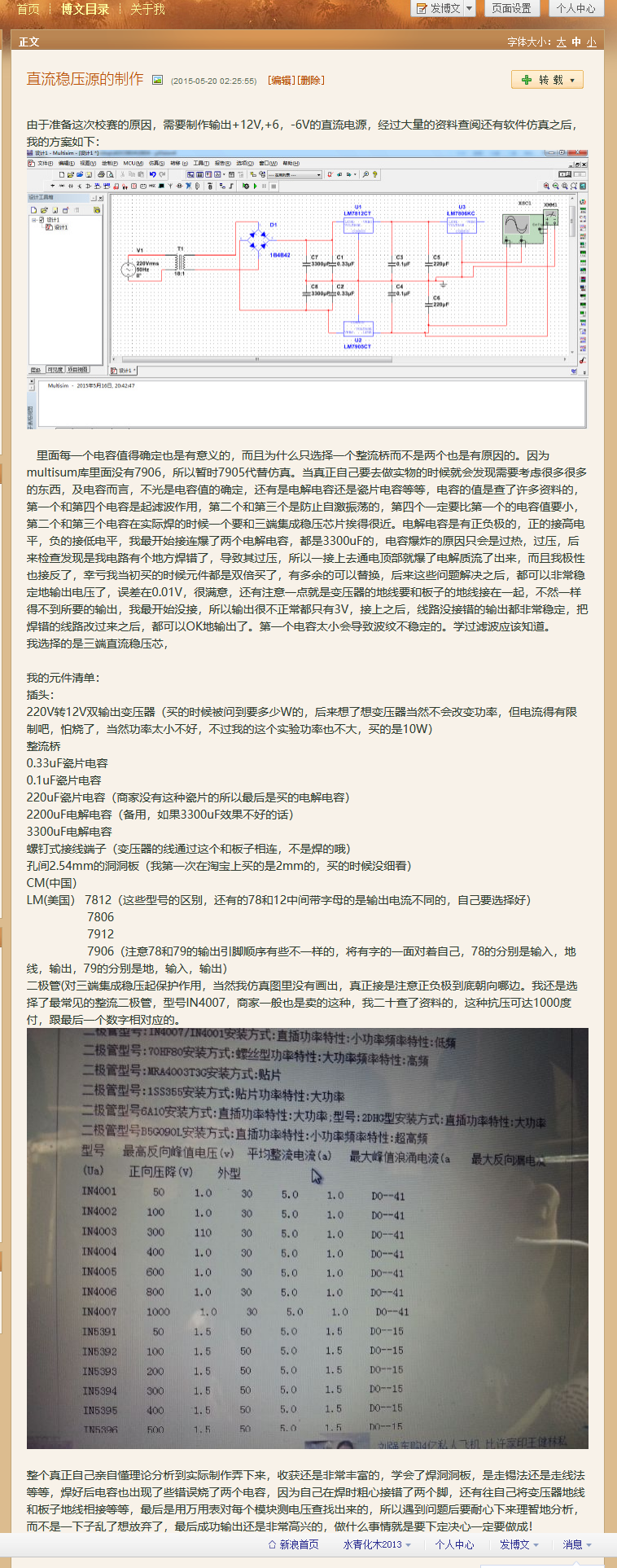 我曾经参加校赛制作的直流稳压电源(转自新浪博客)