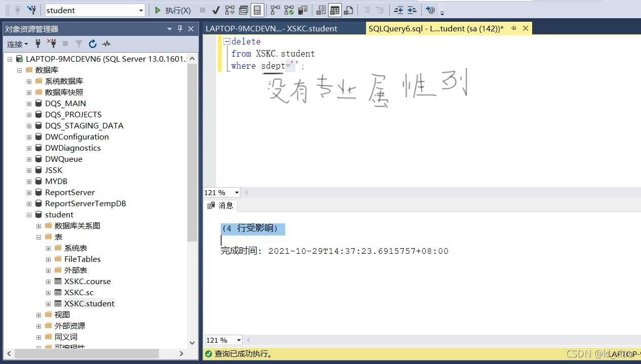数据库系统概论 实验报告答案 实验四:管理SQL Server数据表的数据