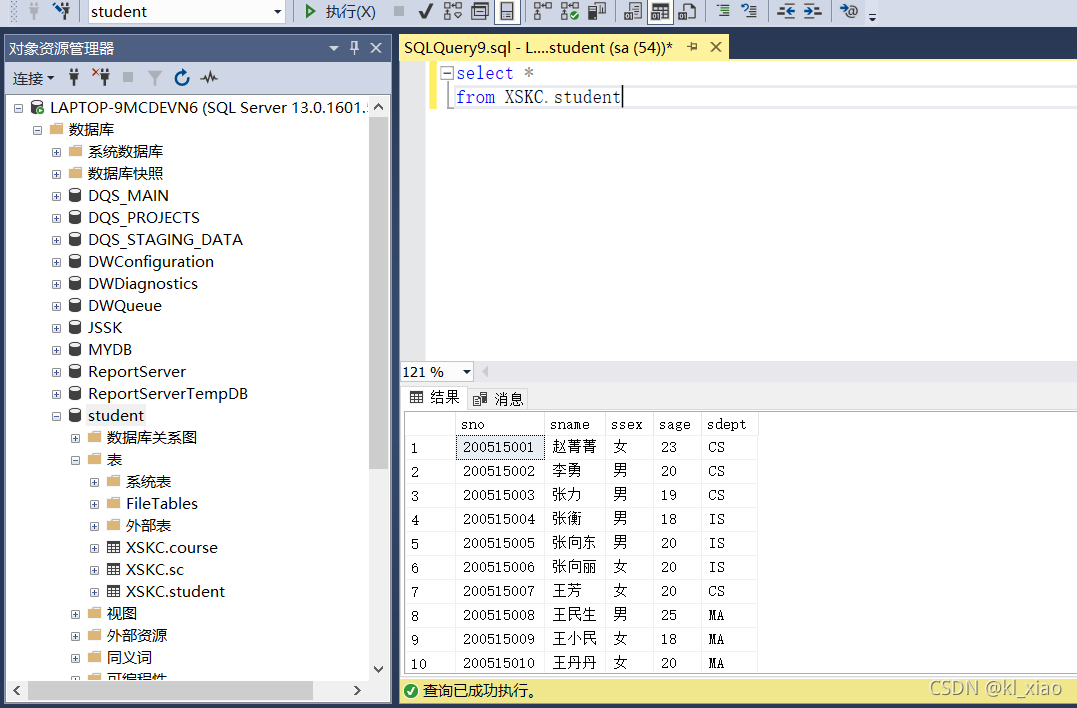 - 查看数据表Student所有记录