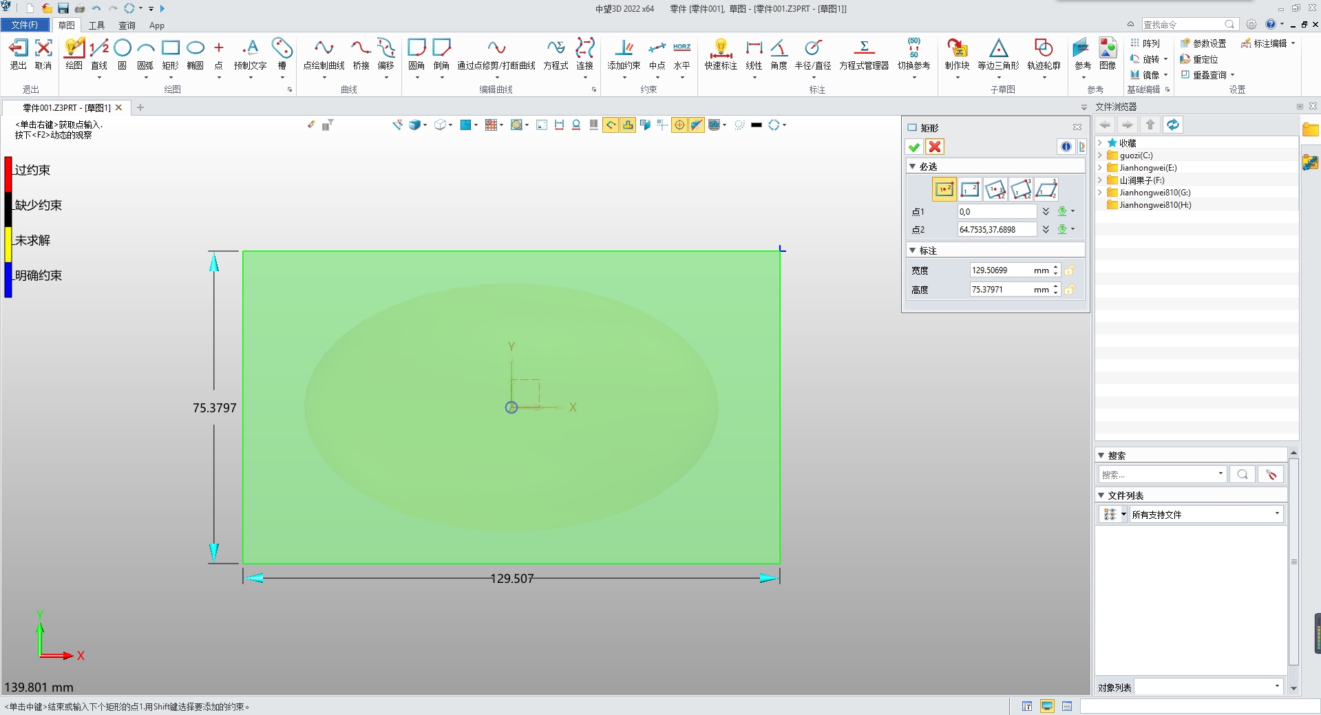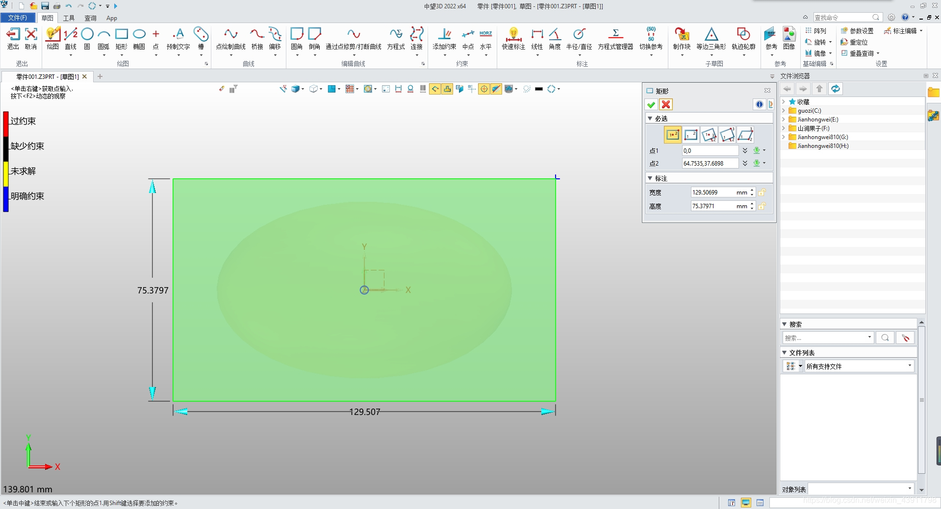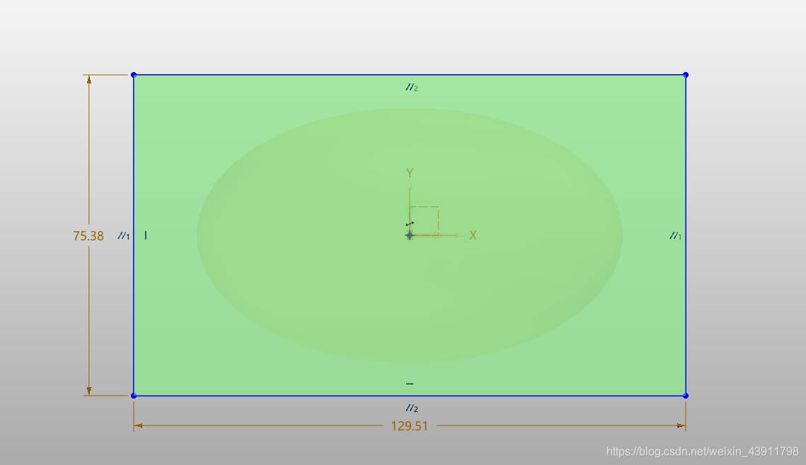 2.选择“XY”平面,新建草图,进入草图界面,绘制草图,如下图所示,矩形的尺寸不限,其他图形也可以,只要求大于椭圆即可。