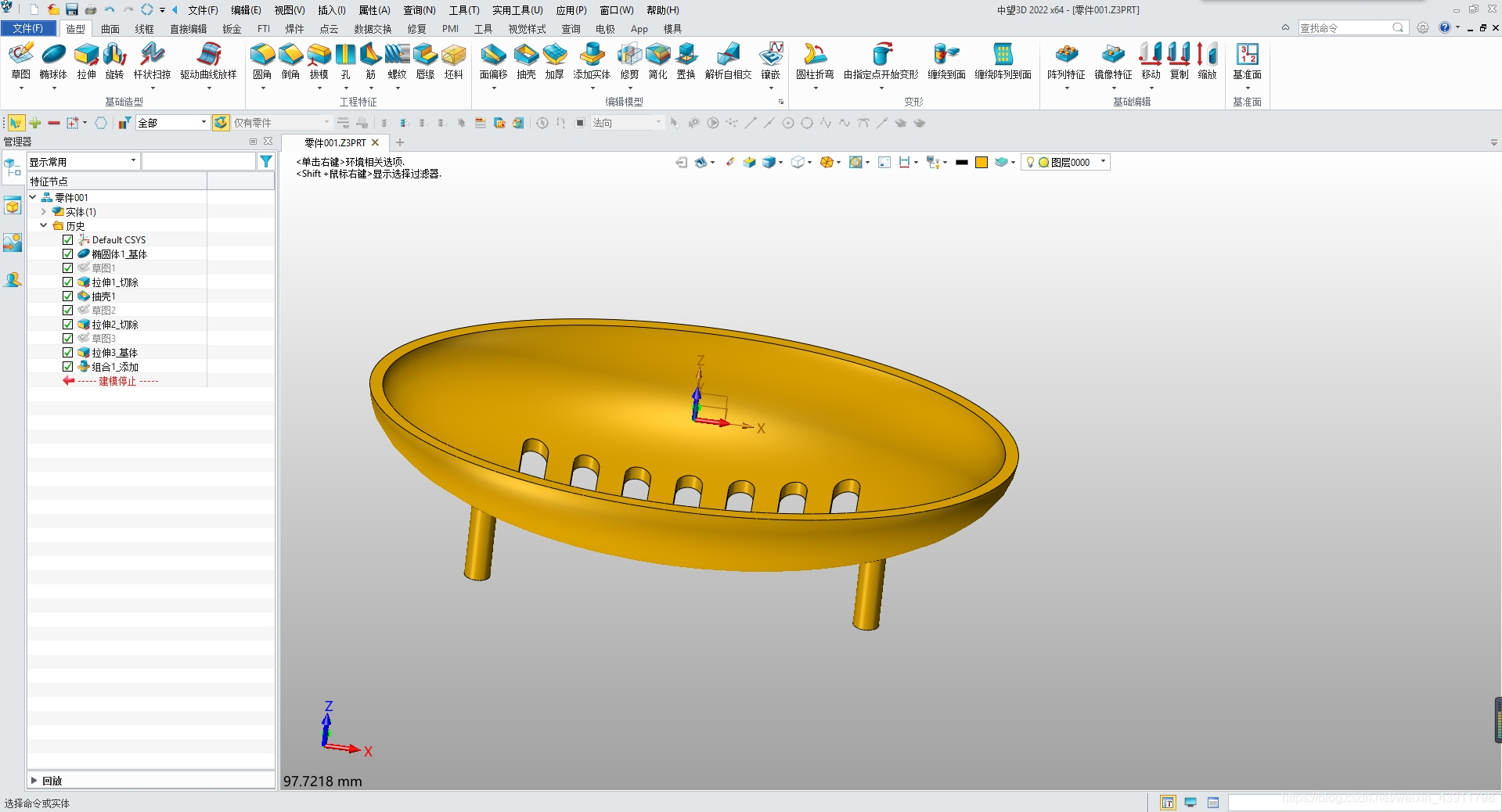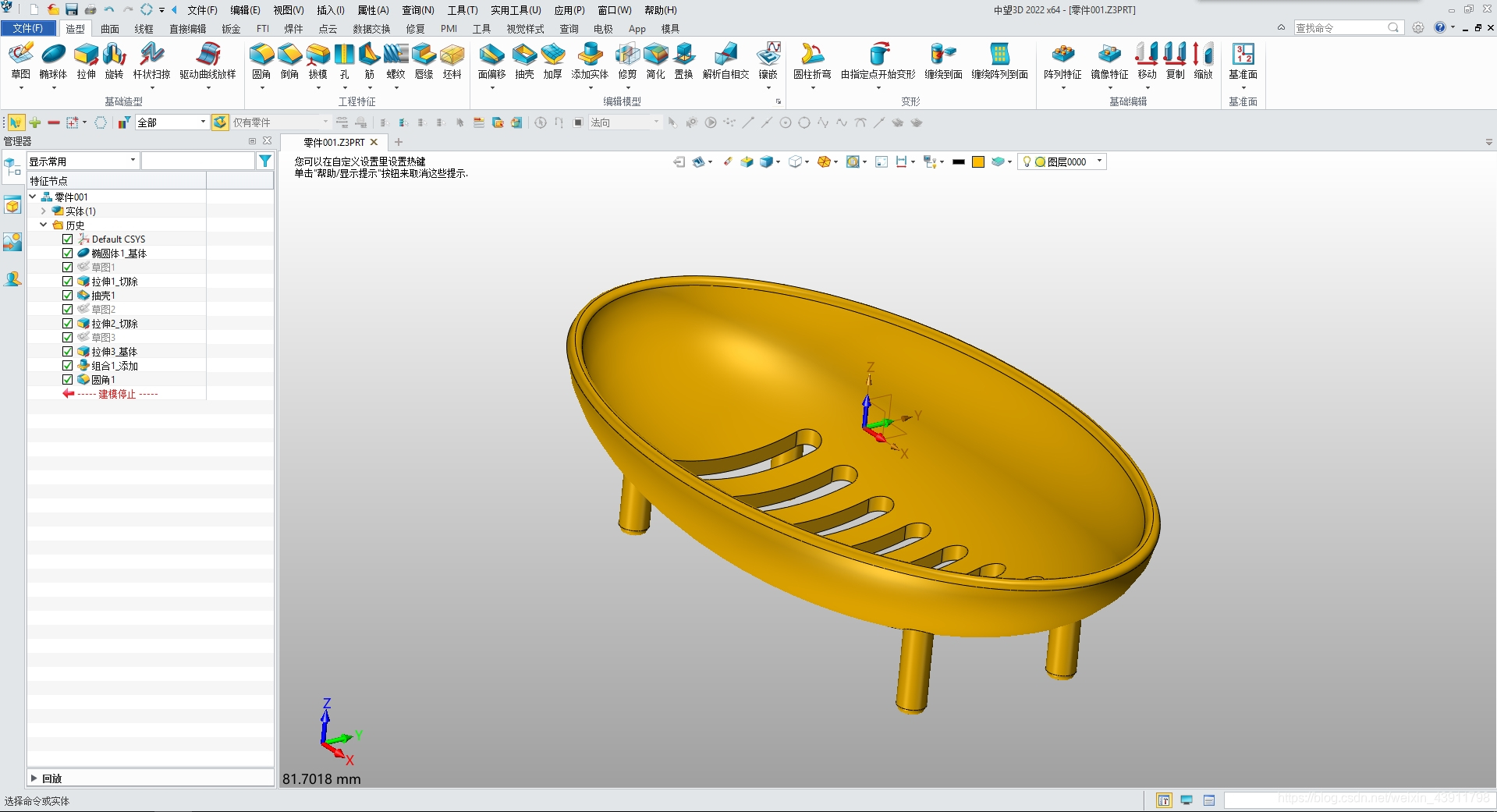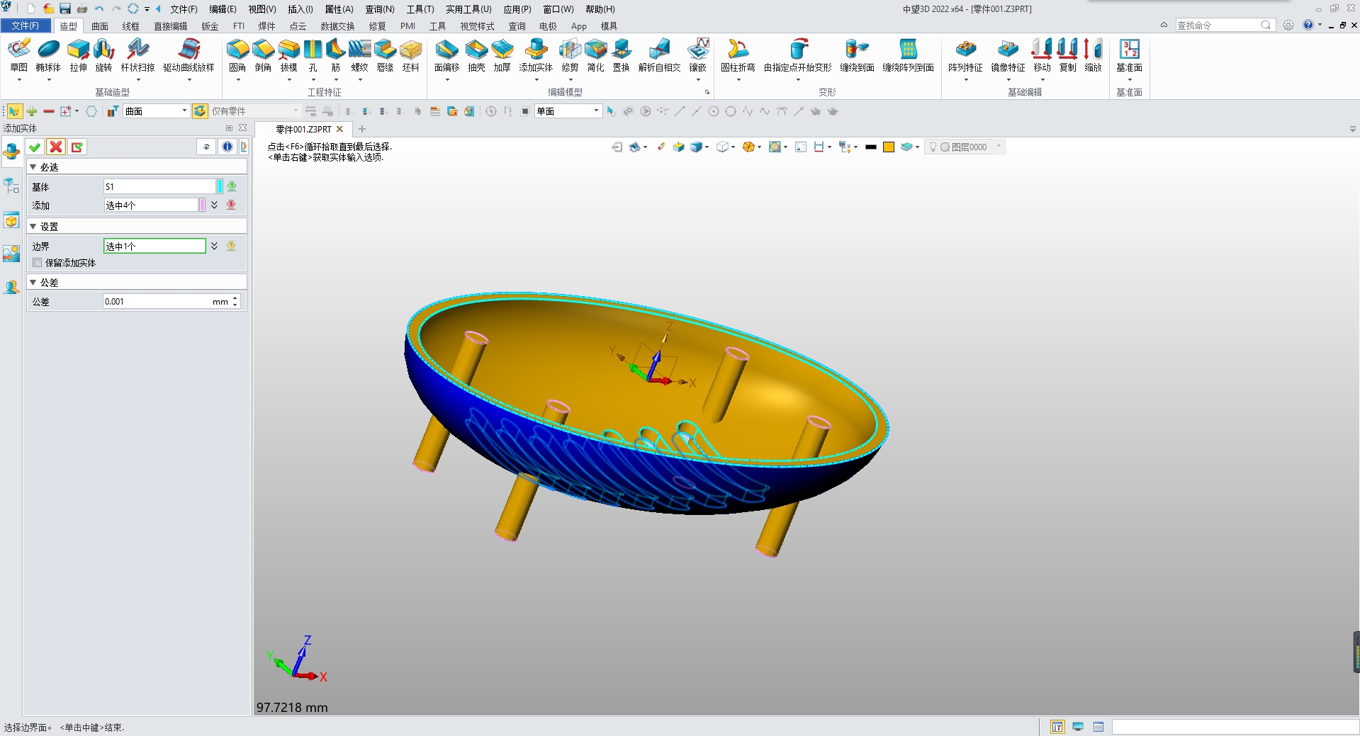 9.单击组合按钮,基体选择香皂盒盒身,合并体选择4个脚,在边界处选择香皂盒盒身的外表面