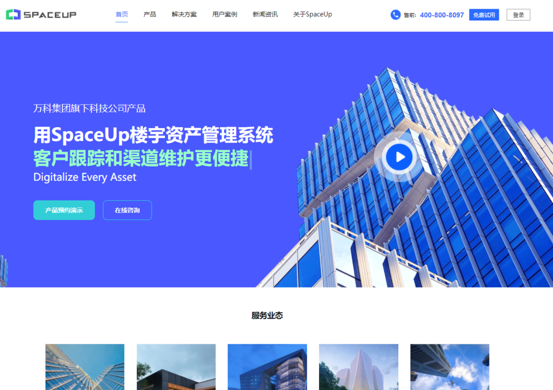 SpaceUp是万科集团依托自身产业园区、写字楼、社区商业、购物中心等不动产经营性业务的数字化产品建设和运营管理经验,独立研发的楼宇资产管理系统平台。助力于产业园区、写字楼、商业体的全面数字化升级,包含资产管理系统、智慧企业服务系统、楼宇资产分析系统、经纪人渠道询盘系统和智慧楼宇IoT系统等。