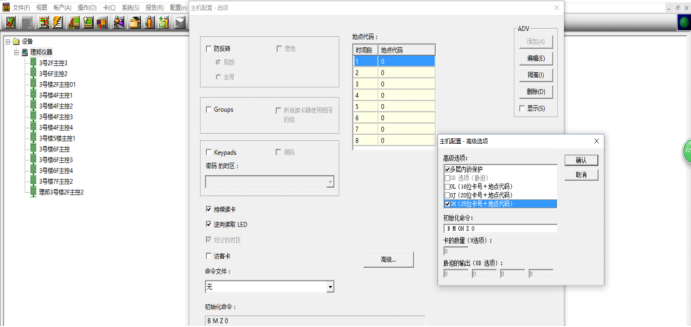 先填写高级选项 再写卡格式 然后依次填写输入,读卡器 直至完成。如图;(此处主要针对PRO3000系列控制器)、,主要包含控制器名称、地址码、卡格式、时区设置、输入输出设置、读卡器设置等。注:若需要10位卡号,则需先在“选项”-“高级”中勾选“OH”项,如下图:
