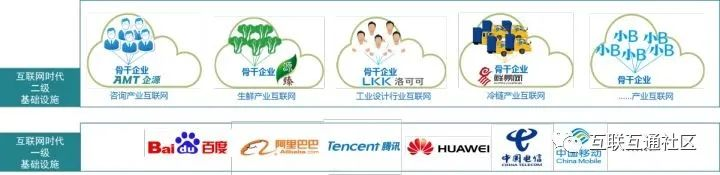 功能特征:BAT三巨头、华为、移动、电信等属于互联网时代的一级基础设施,而产业互联网企业则通过为行业内从业者提供集成性云服务,成为产业的二级基础设施,形成新的价值创造网络。