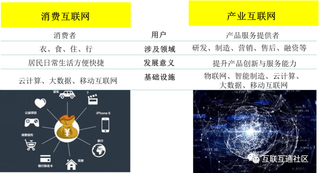 行业互联网是指其按生产同类产品或具有相同工艺过程或提供同类劳动服务划分的经济活动的互联网化,比如服装行业互联网、物流行业互联网、金融行业互联网等。而产业互联网是指由利益相互联系的、具有不同分工的、由各个相关行业所组成的生态互联网,是行业互联网的跨界融合。尽管行业间的经营方式、经营形态、企业模式和流通环节有所不同,但是,它们的经营对象和经营范围是围绕着共同的产品和服务需求满足而展开的,进而形成一个完整的产业生态圈。