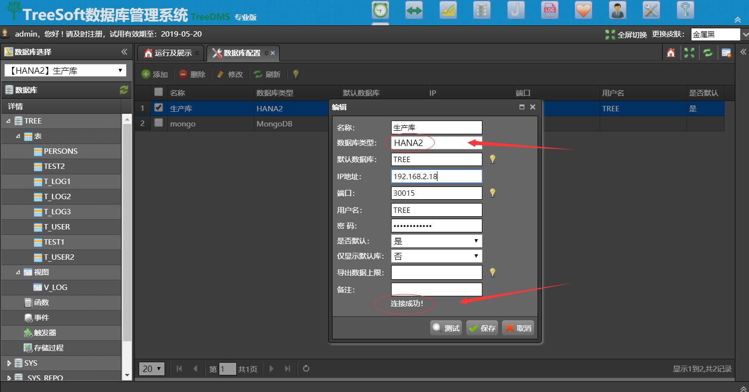 1、配置数据库的连接参数,可以Hana,MySQL,postgreSQL等同时配置,方便切换及查看数据,可以实现异构数据同步,数据交换。