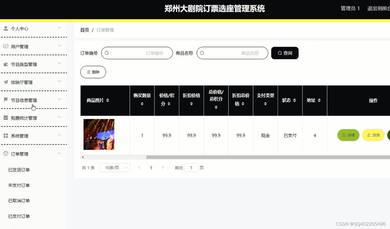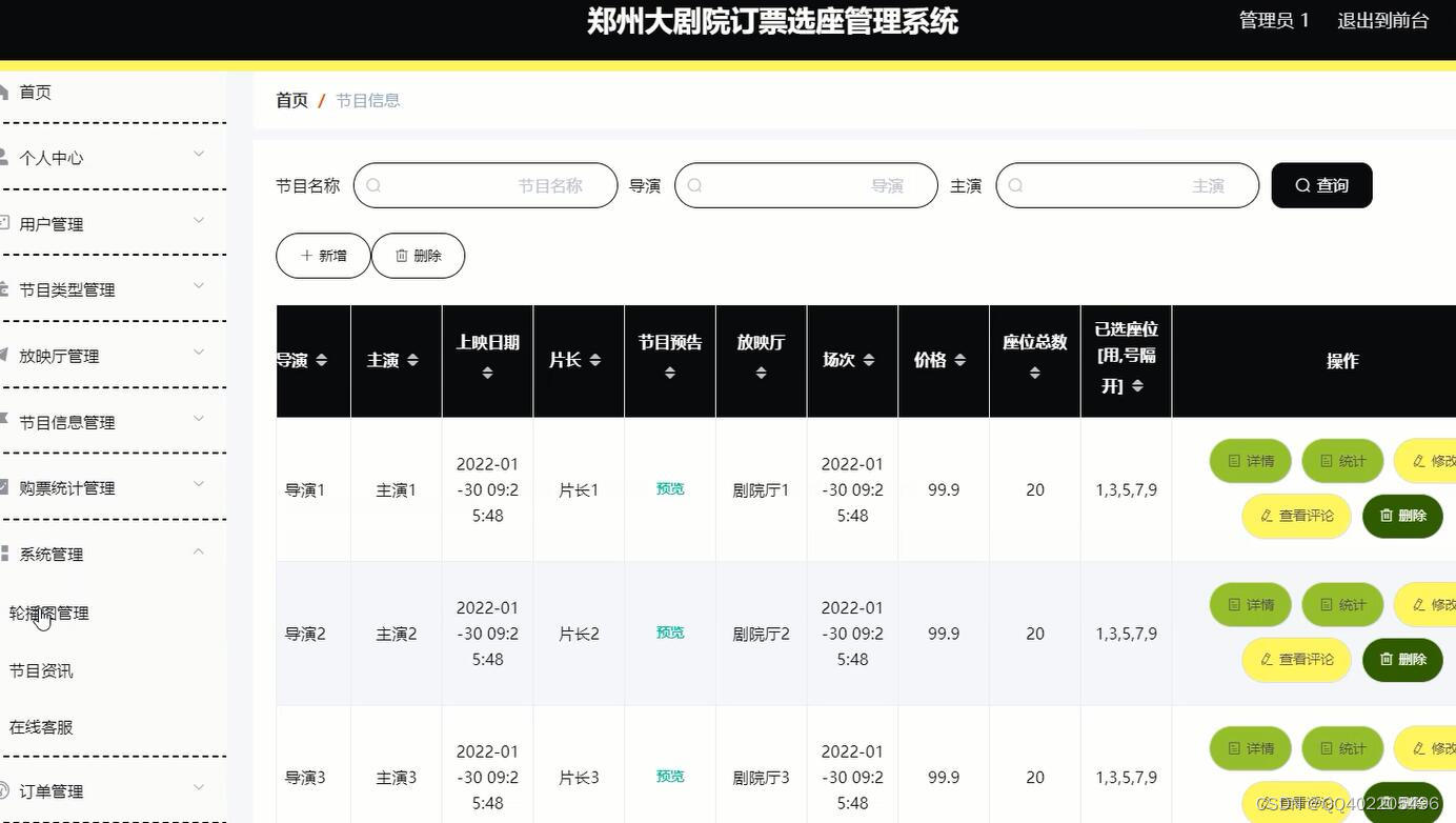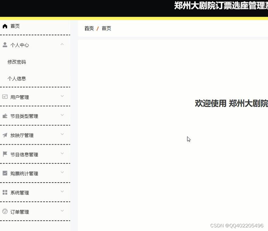 郑州大剧院订票选座管理系统为用户提供大剧院订票选座服务,系统包括前台和后台。