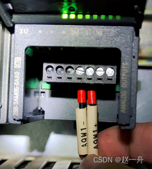 模块 AI 0+ 接温度传感器的1;模块 AI 0- 接电源DC24负极;AQ 0M接AQW-;AQ 1M接AQW+