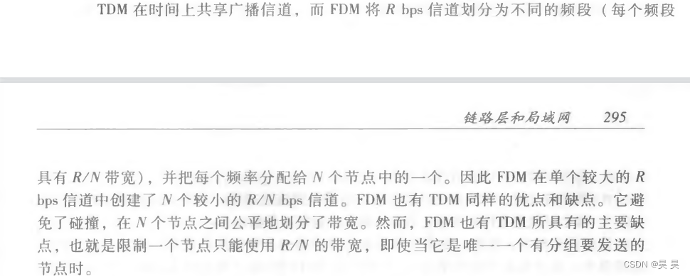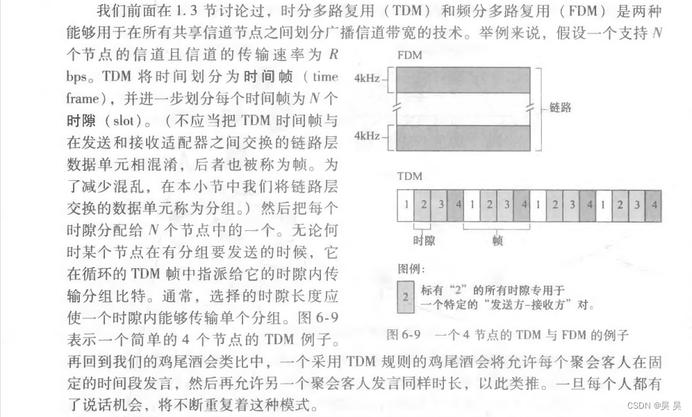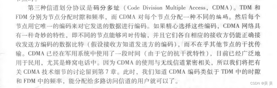 多路访问链路(Multiple Access Link):是多个用户或设备共享同一物理链路进行通信的技术和协议。常见的信道划分方式包括 频率划分多路复用(Frequency Division Multiple Access,FDMA)、 时分复用(Time Division Multiple Access,TDMA)和码分复用(Code Division Multiple Access,CDMA)