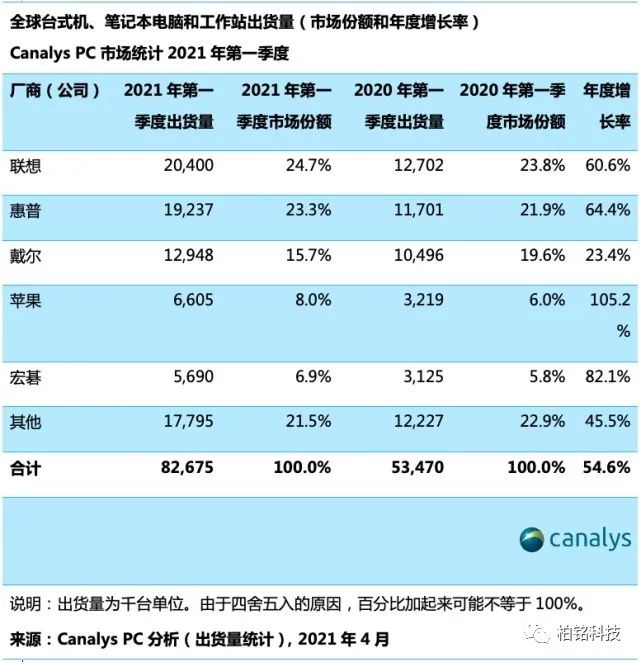 市调机构Canalys公布的数据显示,今年一季度在全球PC市场的出货量同比大幅增长60.6%,并且超越惠普成为全球PC市场第一名,联想再夺全球PC市场第一名,估计就离不开华为的“贡献”。