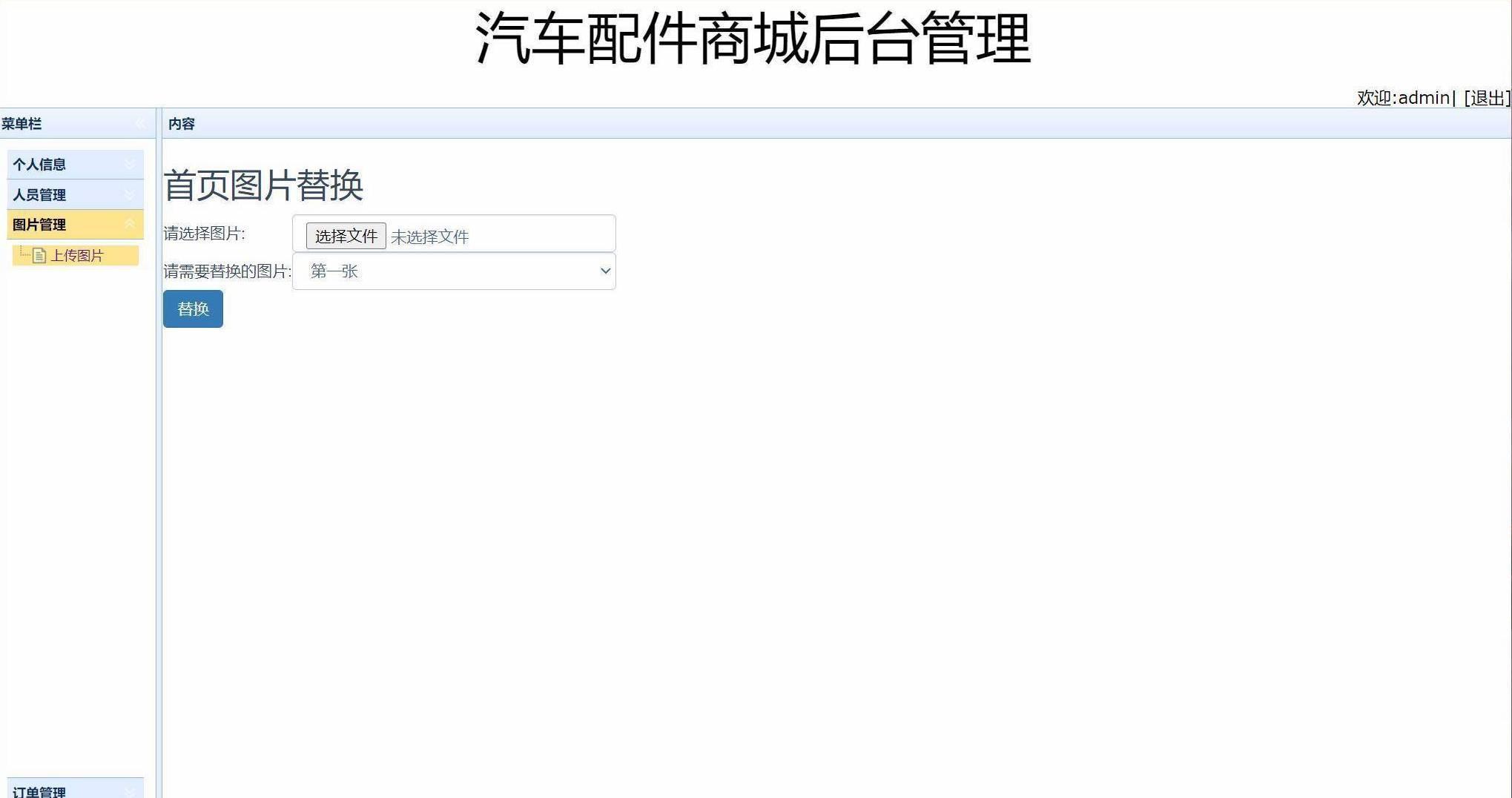 人员管理,修改个人信息,图片管理,图表管理,管理员登录,订单管理,配件管理等功能。