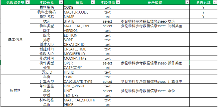 在字段调研之前首先需要了解企业各类业务系统,与客户沟通明确物料分组主数据源头,接下在对应业务系统中对物料三级分类数据全生命周期进行了解,明确源系统物料分组的数据状态、数据是否存在版本、物料分组字段信息及枚举类数据信息等,最终经过调研输出《物料分组元数据及参考数据信息》。