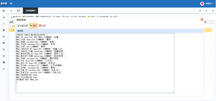 在数据建模时需要注意要预留源系统主键ID、父节点ID、父编码信息字段,为后续企业做数据分析做准备,同时也要余留冗余字段,防止源业务系统增加字段,接下来保存并生成表结构直接提交至功能建模即可。