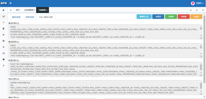 在功能建模主要是对物料分组管理维护页面进行配置,包括字段widget组件定义等。
