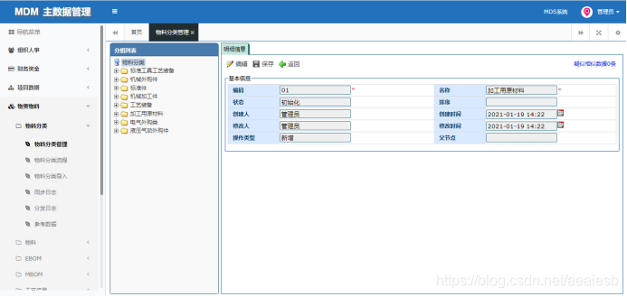 本文以制造业特有主数据物料或物料分组为例对其整体业务进行说明: