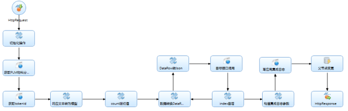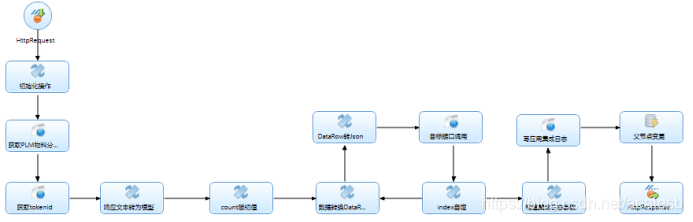 首先在初始化操作定义appCode及appPwd,通过Http调用组件调用PLM数据获取服务,数据获取后将数据进行二次封装得到一个XML,接下来将XML进行DataSet数据转换,定义index索引值为0,通过appCode和appPwd获取tokenID,通过dataSet.size()获取count最大索引值,之后对数据进行转换成Json,调用MDM数据接口接口将数据插入到主数据内,最后根据index索引进行循环判断,如果index>=count则退出循环反之则继续循环插入,最后写入应用集成日志,比变更流程父节点完成集成流程。