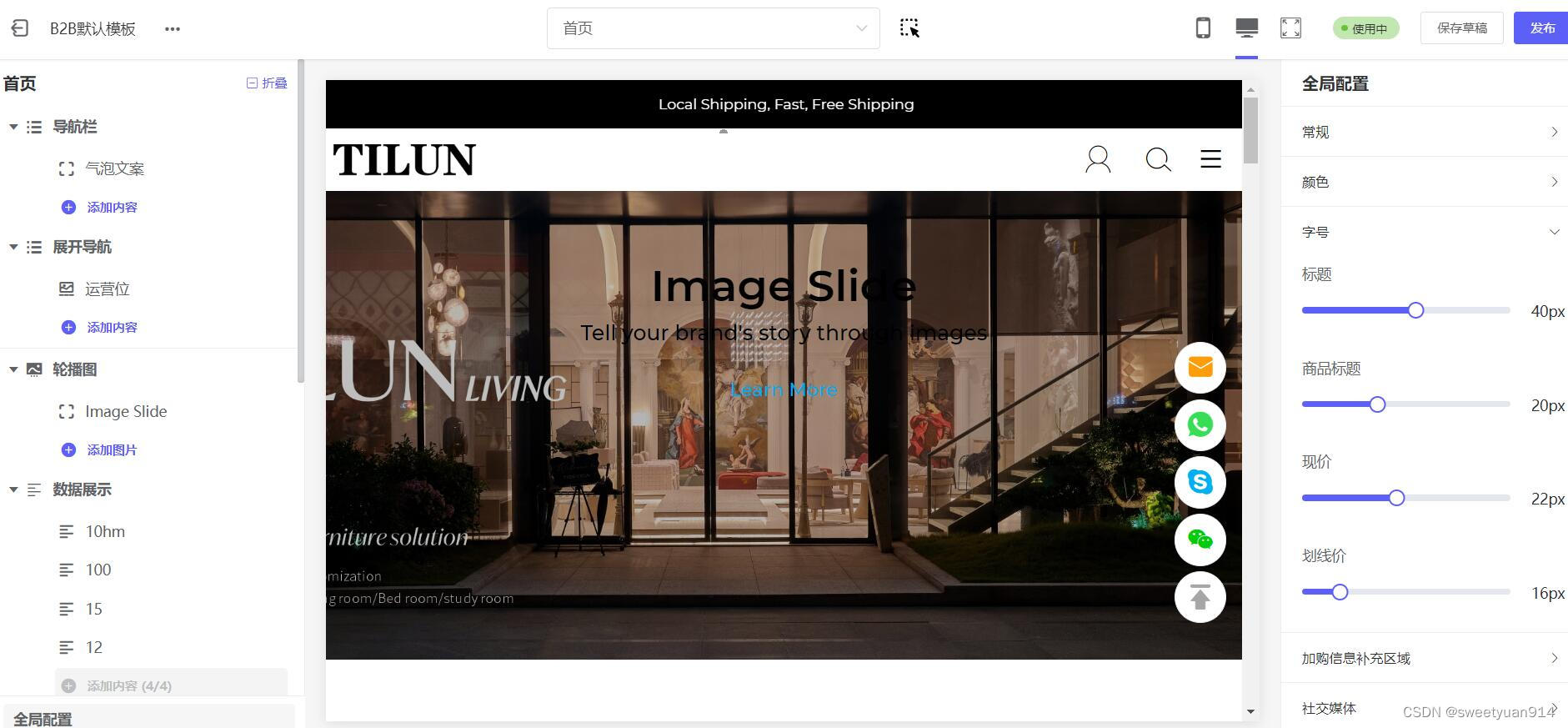 DIY店铺装修,拖拽方式更改模板布局,方便业务人员操作