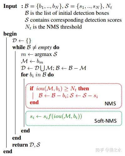 在这种情况下,Soft NMS就提出了,它们两种算法的区别在于:
