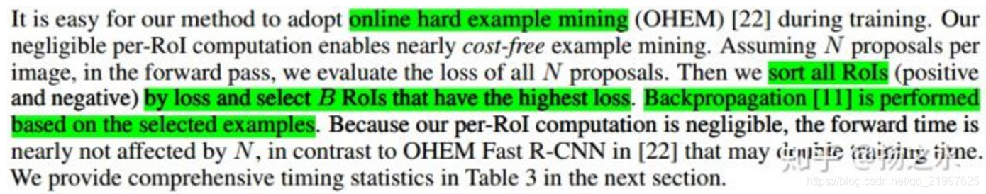 即online hard example mining,从名字也可以看出它和Hard Negative Mining有一定的关系。这里给出R-FCN论文中对它的描述: