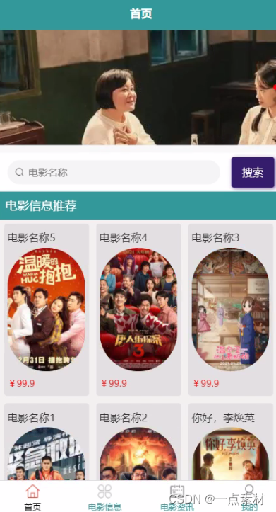 (2)用户客户端:首页、电影信息、电影资讯、我的等相应操作;
