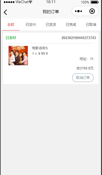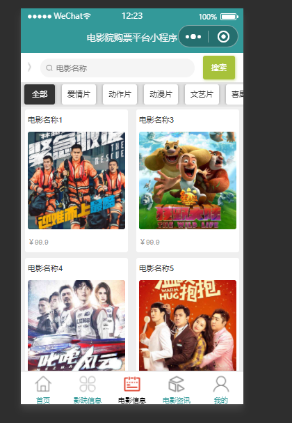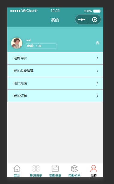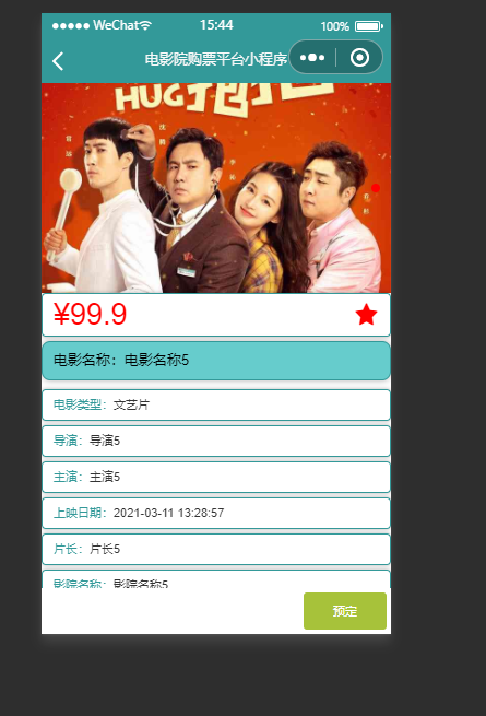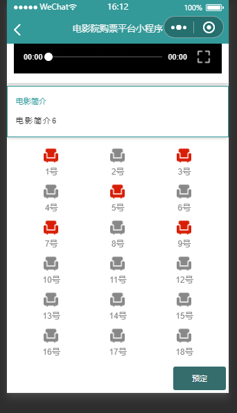 小程序端:注册、登录、首页、影票下单信息、影片详情、我的订单,订单详情,座位预订,支付电影票等。