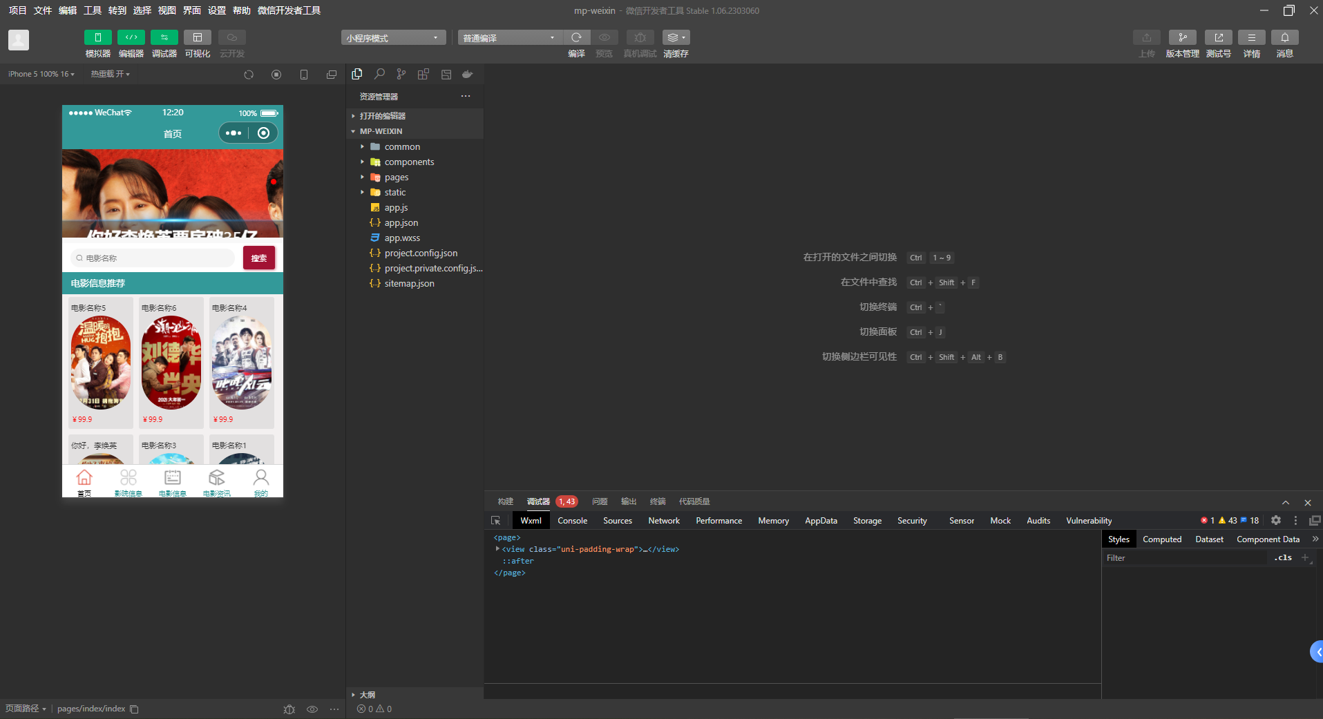 项目简介:基于微信小程序的电影购票平台系统,是一款用户购买电影票,管理员登录后,系统管理用户购买电影票的选择下单,订单详情,支付电影票,预订座位,查询,等的功能