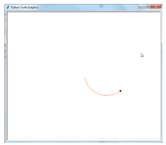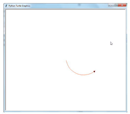 import turtleturtle.pencolor("red")turtle.setheading(-80)turtle.circle(100,120)