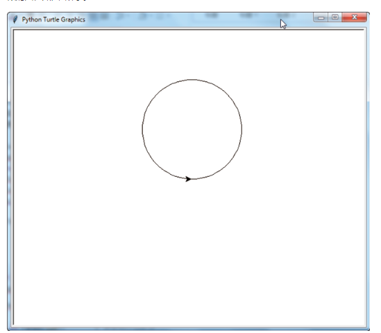 我们执行一个循环120次,每次循环中移动5个像素,然后左转3度。这样完成循环后,正好左转了360度,回到了最初的位置。执行过程中,在窗口中,我们会看到光标从初始位置出发,按逆时针方向画出了一个近似的圆,如图3所示。