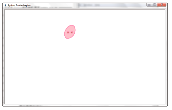 下面我们来绘制佩奇的鼻孔。还是拿起画笔,将画笔定位到指定坐标,设置启动时运动的方向,指定画笔颜色和填充颜色,落下画笔。然后画一个圆。这样就画好了左鼻孔,右鼻孔的代码也类似,这里就不再赘述。调用这个函数,看一下绘制效果,如图5所示。
