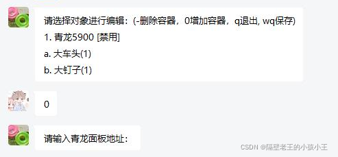 青龙管理,通过此口令可以增加、删除、编辑、查看容器信息。