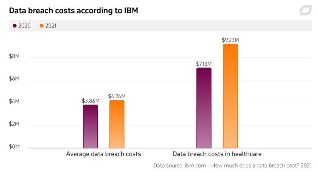 医疗行业中的大多数数据属于 PII(个人身份信息)或 PHI(受保护的健康信息)。根据最近的 PEW 调查,近 62% 的患者担心其信息的安全性,而 Statista 的 2022 年调查显示,73% 的患者愿意与特定组织共享信息。为了解决这两种情绪,医疗行业的数据拥有者应保证数据安全,否则可能会失去声誉和资金。截至目前,数据泄露给医疗行业带来的损失比其他任何行业都高。